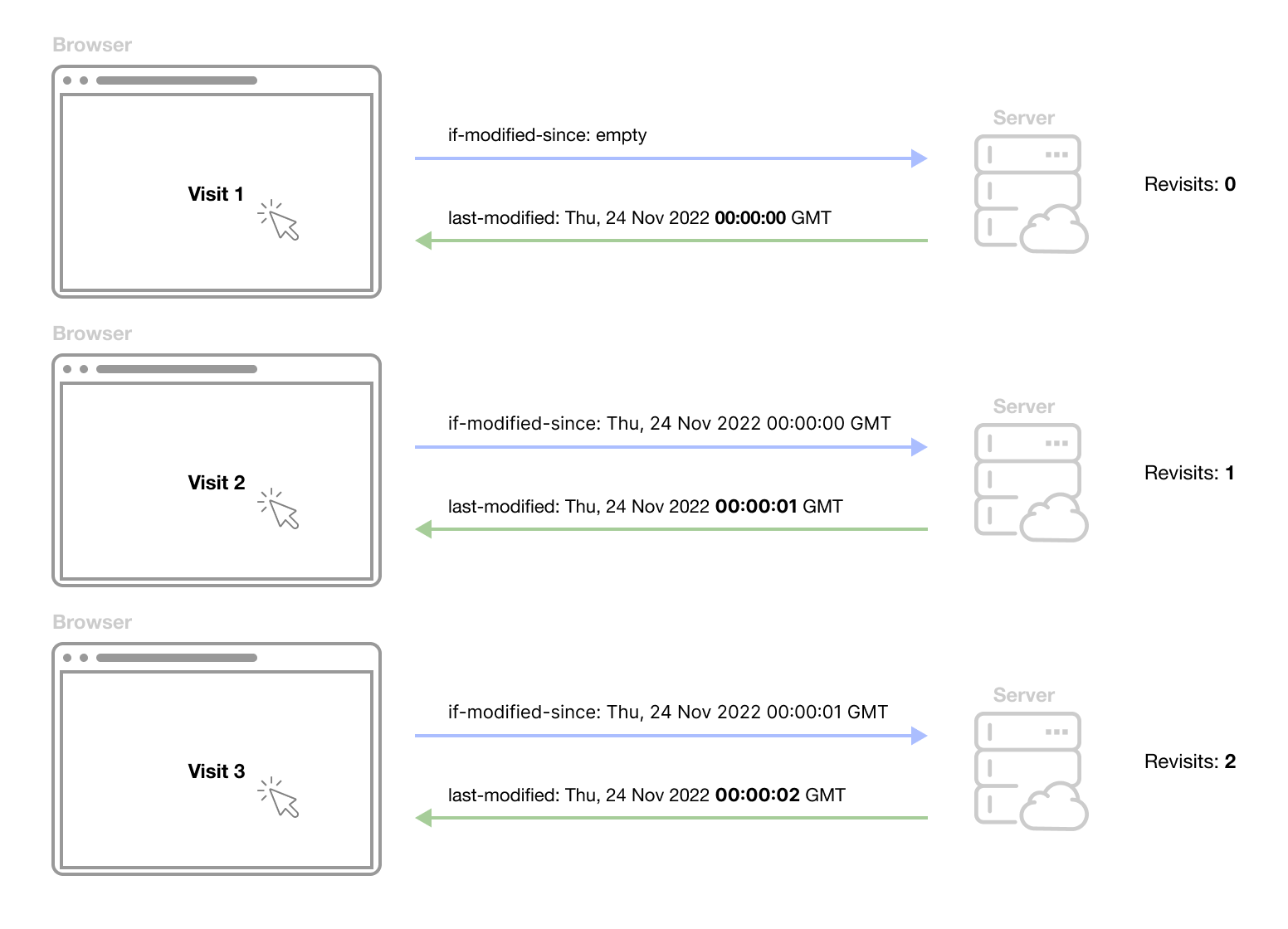 This way, the server can calculate the distance in seconds since midnight to give us a visit count.